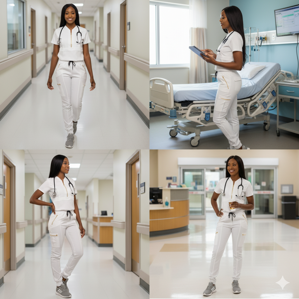 Introducing the Quintessa Set from The Oasis Collections. This stylish and comfortable ensemble is crafted from a premium woven fabric blend of polyester, rayon, and spandex, ensuring a perfect fit and ultimate comfort. Designed for use in hospitals, the Quintessa Set combines functionality with a chic look, making it ideal for healthcare job. Brand: ClarityScrubs Use: Hospital Material: Polyester/Spandex